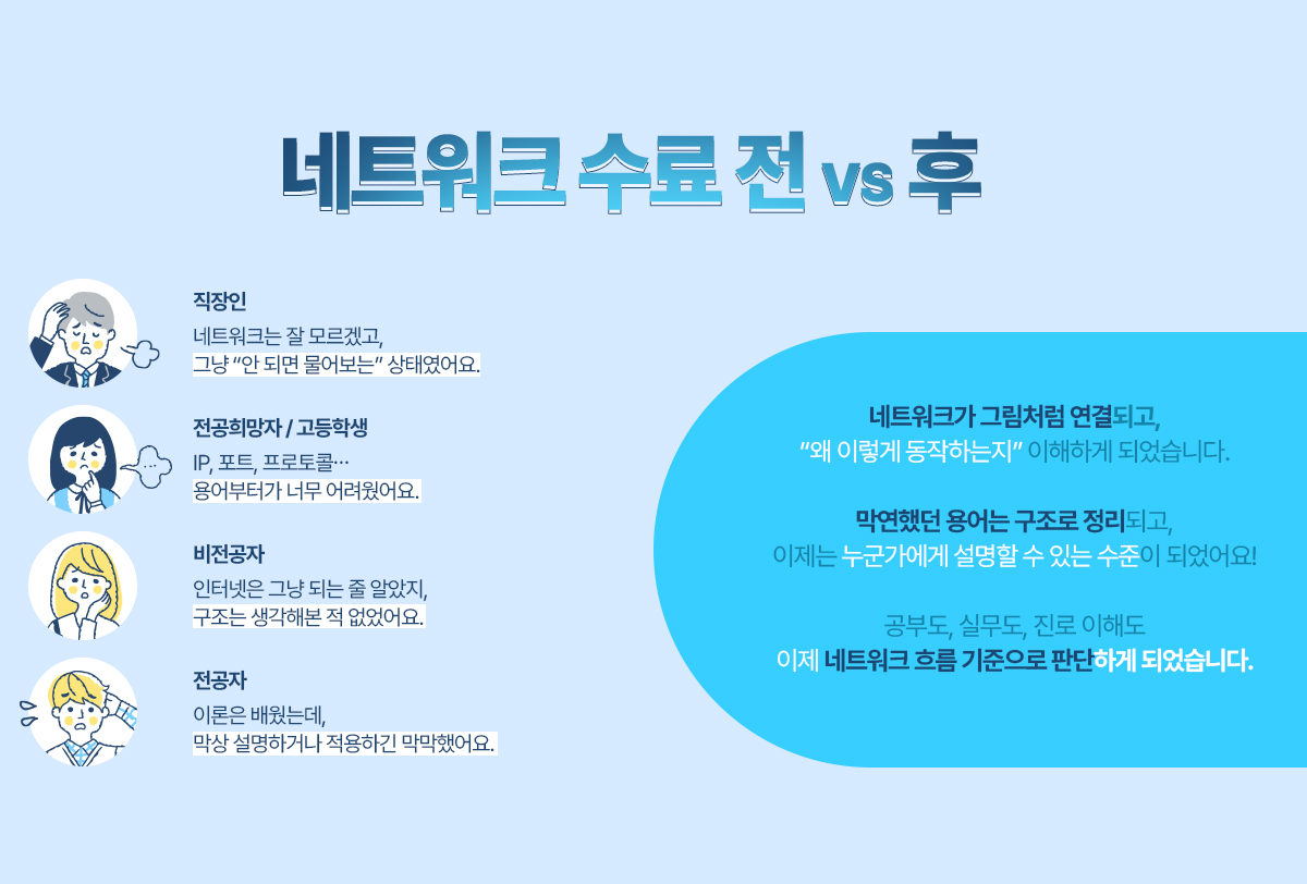 이해 없이 외우던 네트워크에서, 이해하고 설명하는 네트워크로!